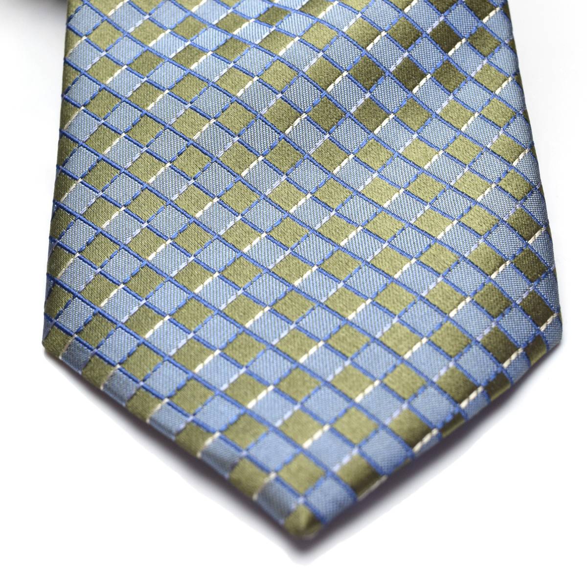 Green and Blue Grid Silk Tie